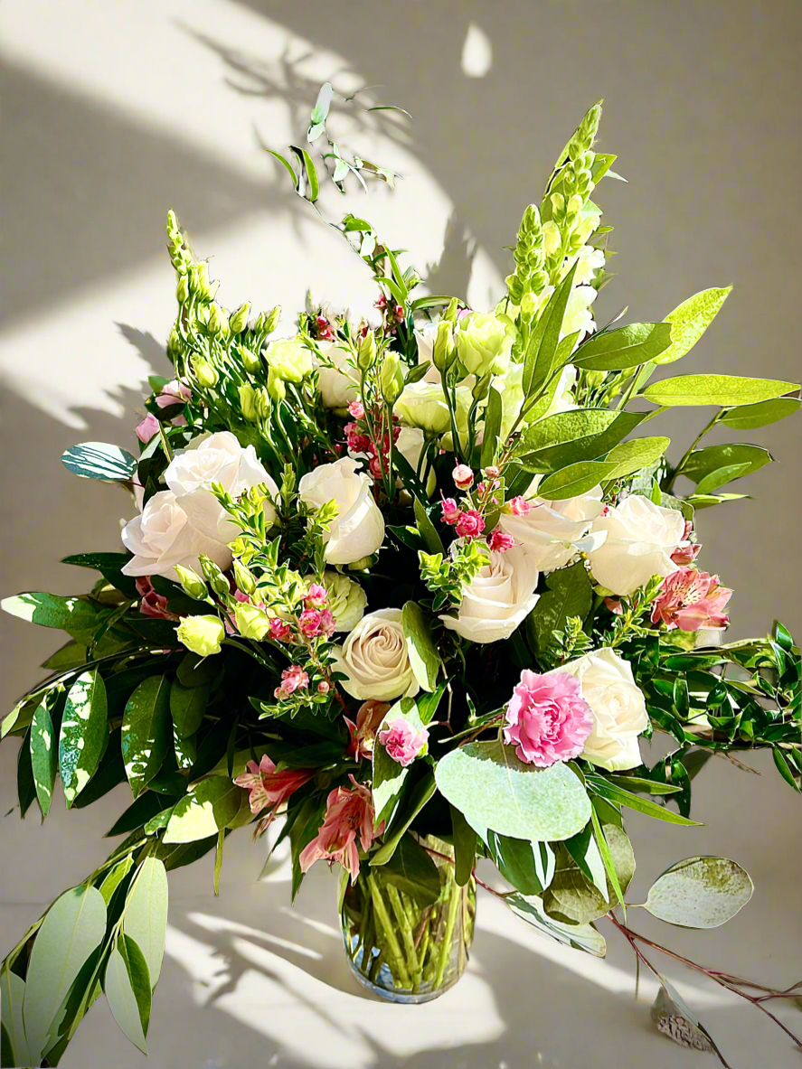 Soft Bloom by Bloom and Petals is a delicate and charming floral arrangement that captures the gentle beauty of spring, thoughtfully crafted right here in Oakville. Featuring a harmonious blend of soft pink and pristine white blooms, it evokes a sense of elegance and tranquility. Accented with lush greenery, this arrangement adds a fresh and natural touch, perfect for any occasion—whether it’s a wedding, anniversary, or simply brightening up your home. Handpicked and artistically arranged with care, Soft Bloom embodies the timeless beauty and personalized touch that Bloom and Petals is known for in the Oakville community.